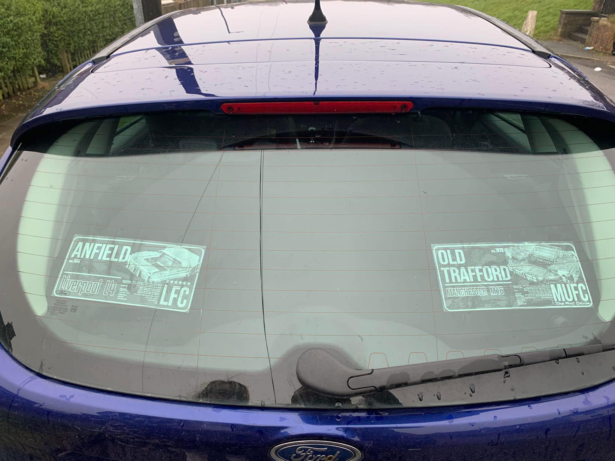 - EXTERNAL printed, for application to the outside of the window, in case of heavy tint windows (or bodywork application).