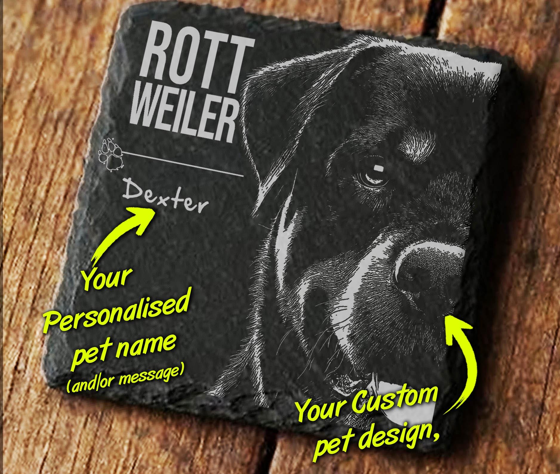 If you select a personalised option, after ordering please send us your required pet name and/or high detail photo image and we will create a digital design proof for you to review prior to dispatch. Photos can be assessed for free prior to ordering to check for design suitability.