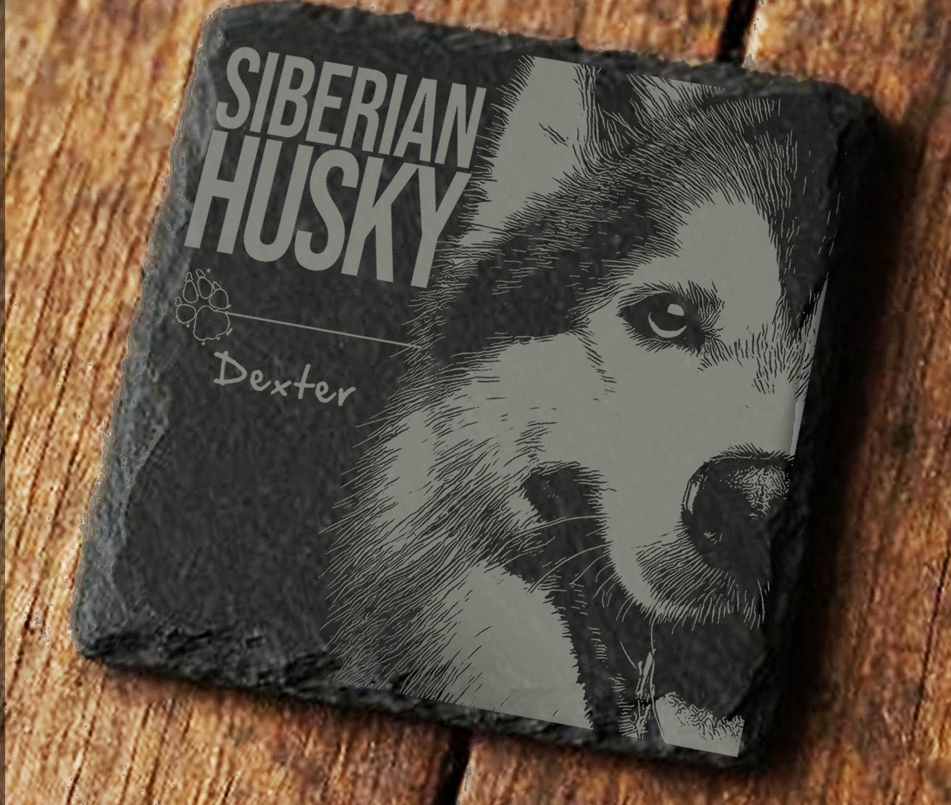 > High Detail Artwork & Text is laser-engraved onto the slate coaster.