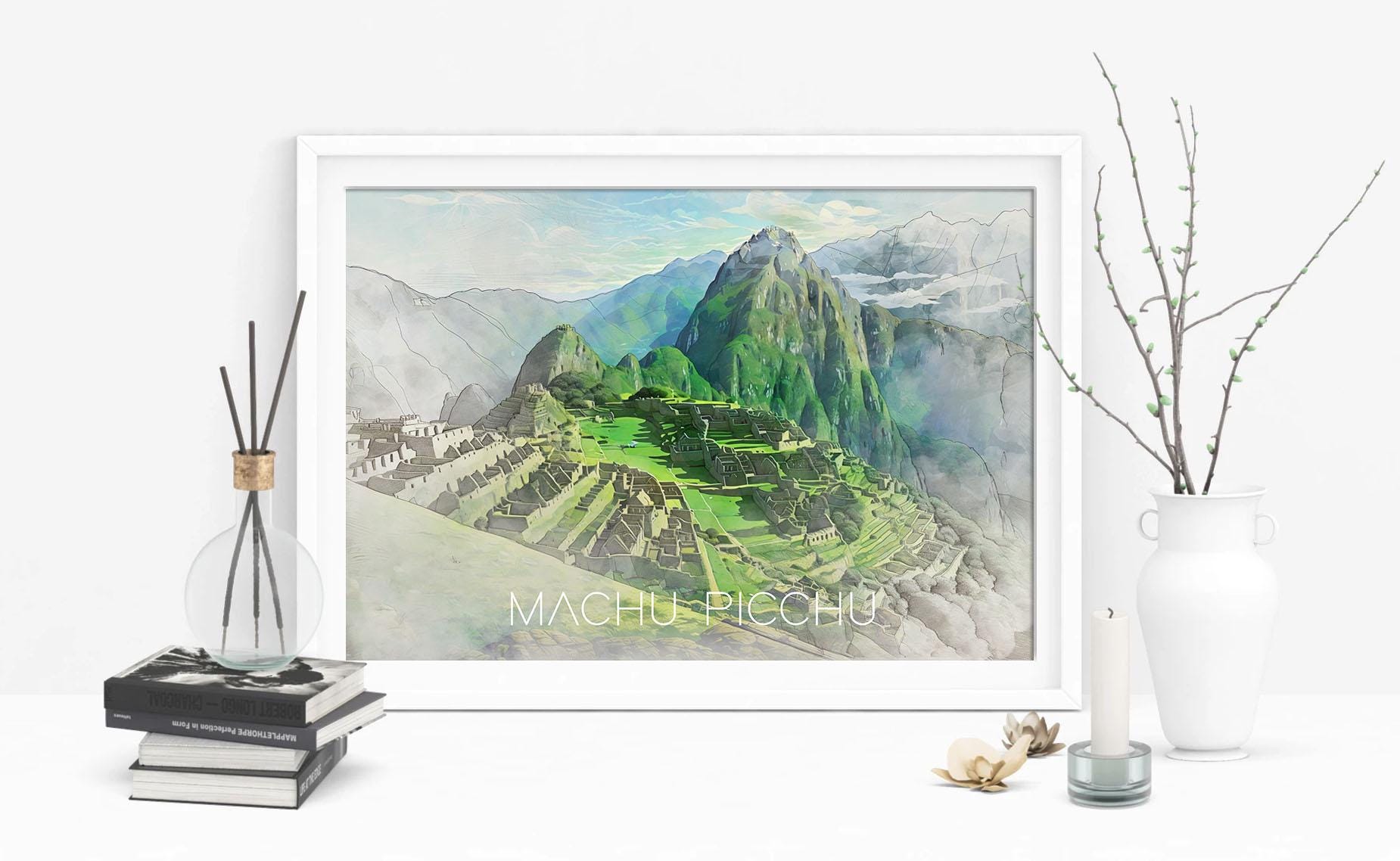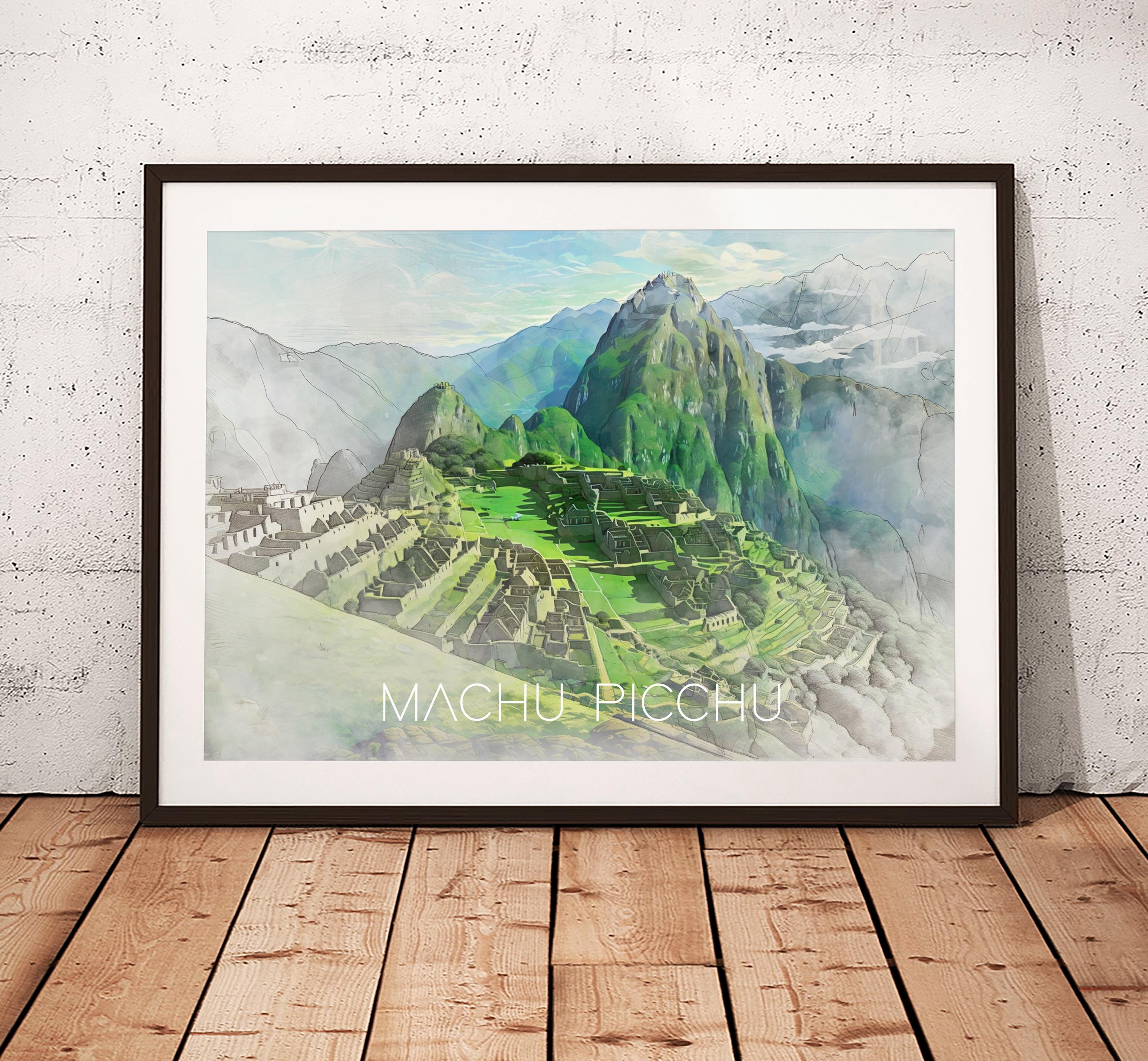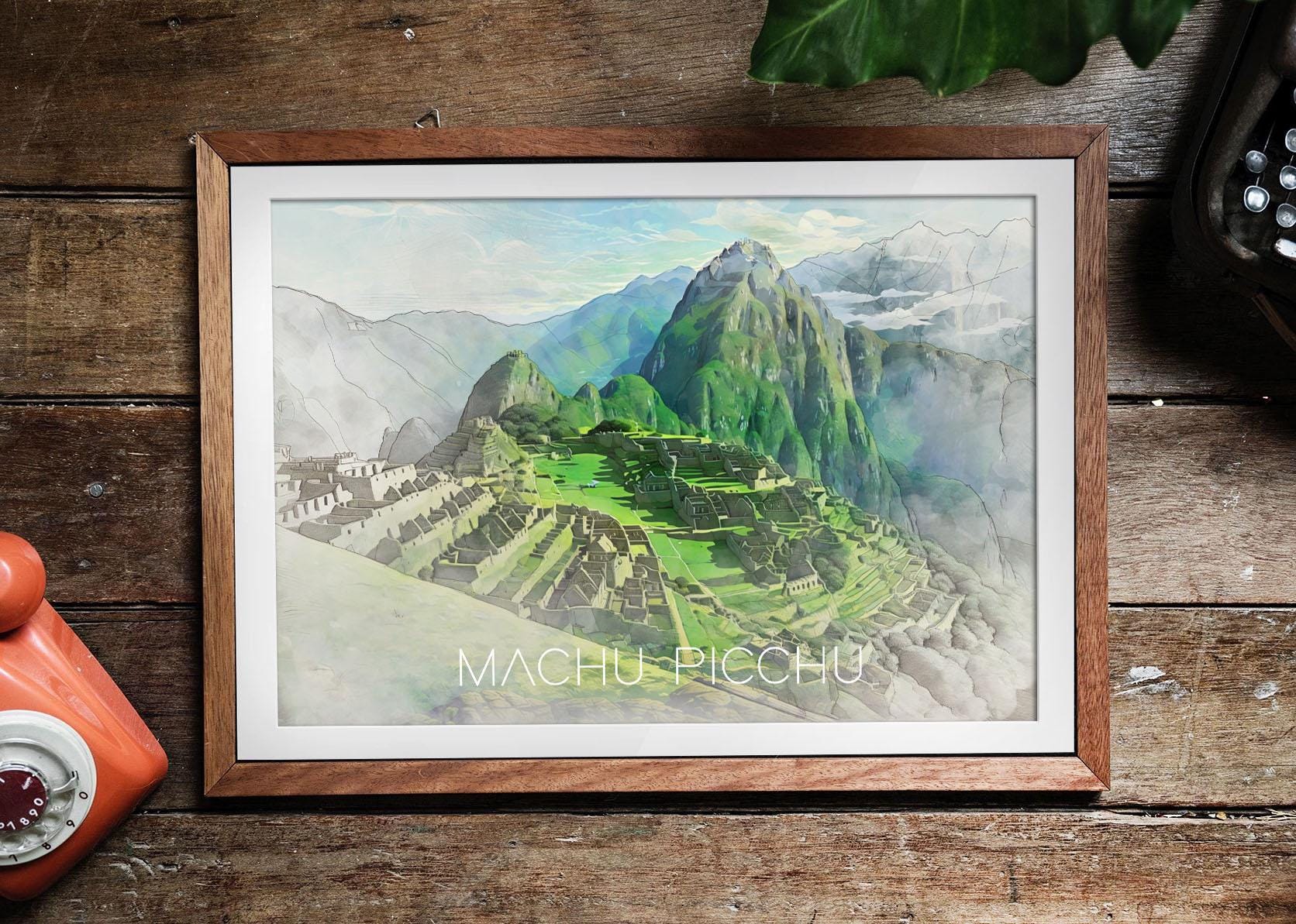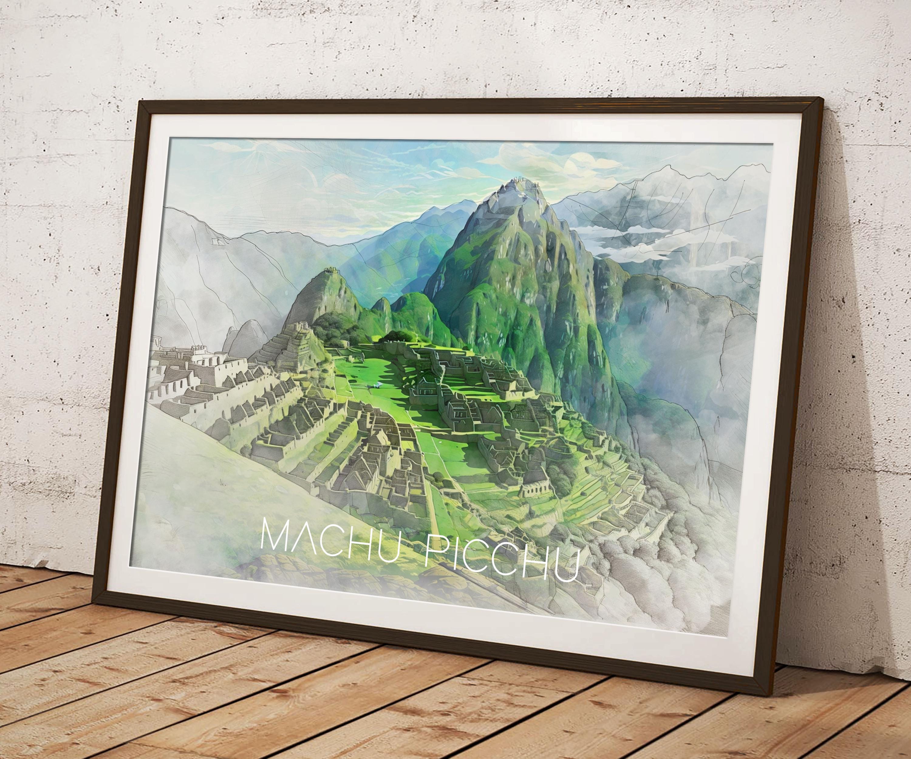 Machu Picchu Illustration Print - Peru Travel Poster, Illustrated Wall Art Painting, South America Gift